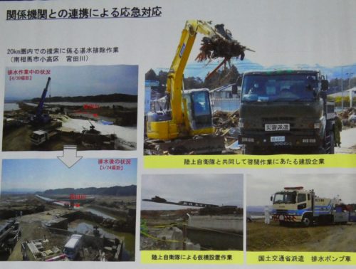 特に優先的対応事項として、①避難・物資輸送路の確保(道路・港湾・空港)②仮設住宅建設をはじめ住宅確保 ③生活環境確保(流域下水道の応急復旧・公共下水道の復旧支援)を上げ、当時を振り返り時系列で詳細に説明いただきました。切迫感のある県庁内の動きが伝わってきました。