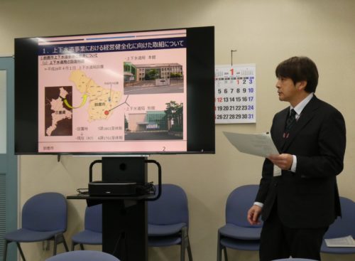 今後の課題として、水道事業での基幹管路の計画的な耐震化推進、また、下水道事業では下水道管の老朽化による更新時期が集中し、更新費用の増大が見込まれることから、効率的・効果的な維持管理に向け、ウォーターPPP(※注3)やAIを使った先端技術の調査・研究等を行い、導入可能性を探っていきたいとのことでした。