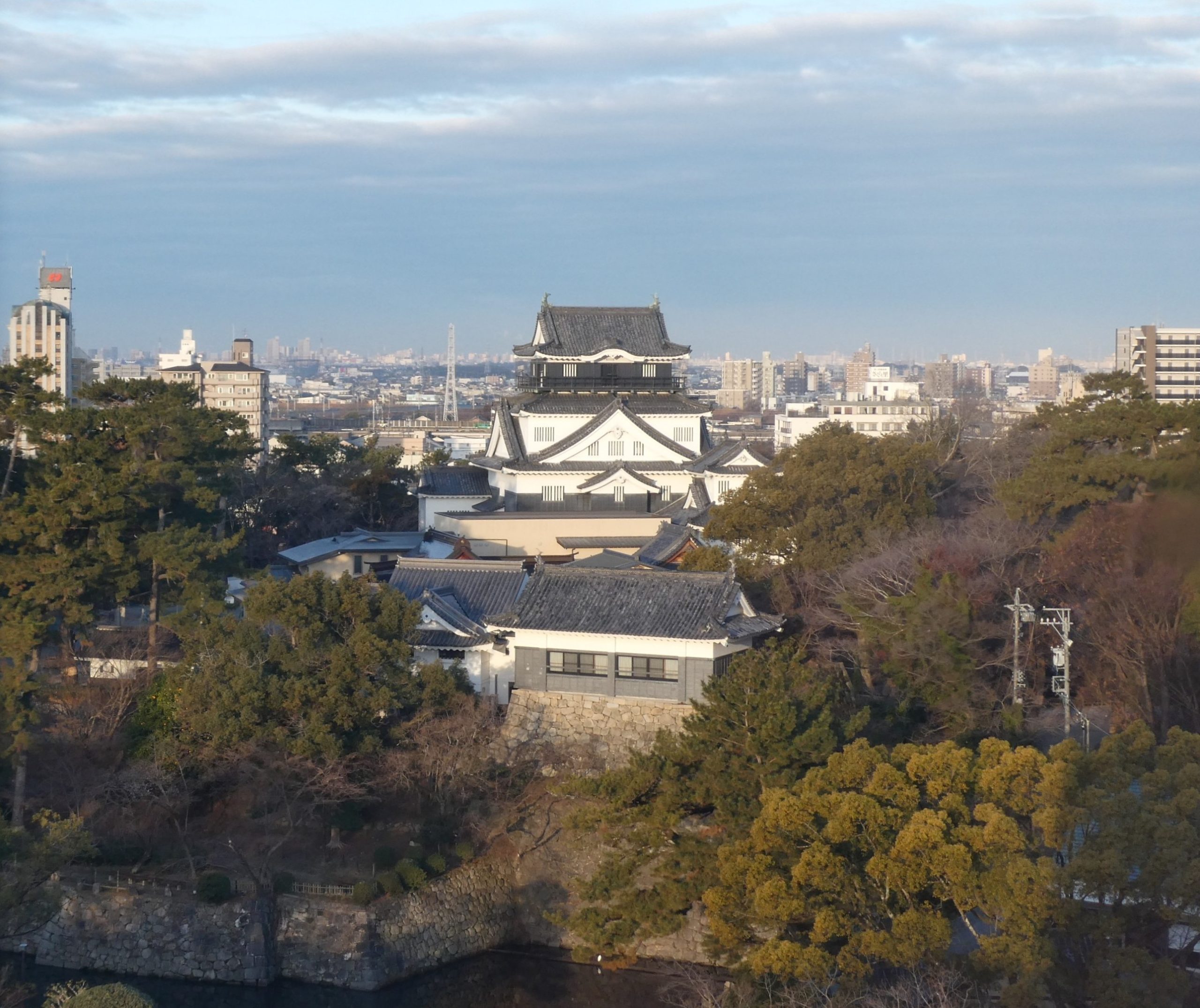 視察で宿泊したホテル9階のレストランで、朝食の窓辺から見た岡崎城。徳川家康公、出生の城です。天文11年12月26日午前4時ごろに生まれてから織田家の人質となる6年間と、今川義元が桶狭間の戦いで戦死したため城に戻った19歳から、浜松に居城を移す29歳までの10年間暮らしました。